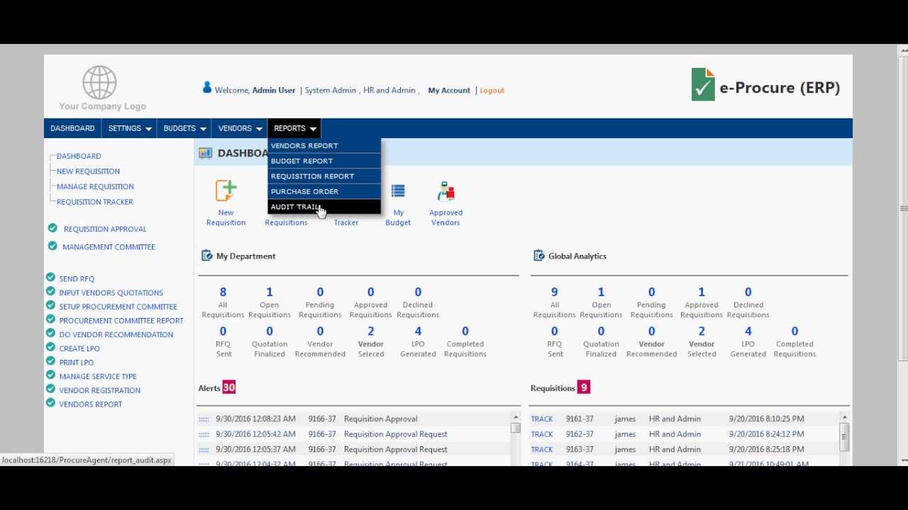 Plucom e-Procure(ERP) is feature rich web-based application dedicated for Requisition, Purchasing and Supply Chain Management. From requisition entry through to...