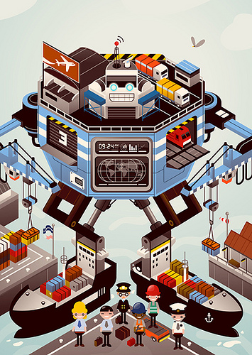 Book cover illustration for a thesis about "Bundling strategies in global supply chains"